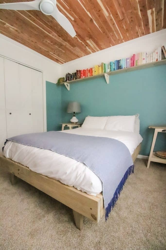 Want to build a platform bed to get your mattress off the floor? This bed is sleek and modern and easy to modify to be double, queen, or king sized. This bed is built using a Kreg Jig pocket hole jig making it a very beginner-friendly woodworking project.